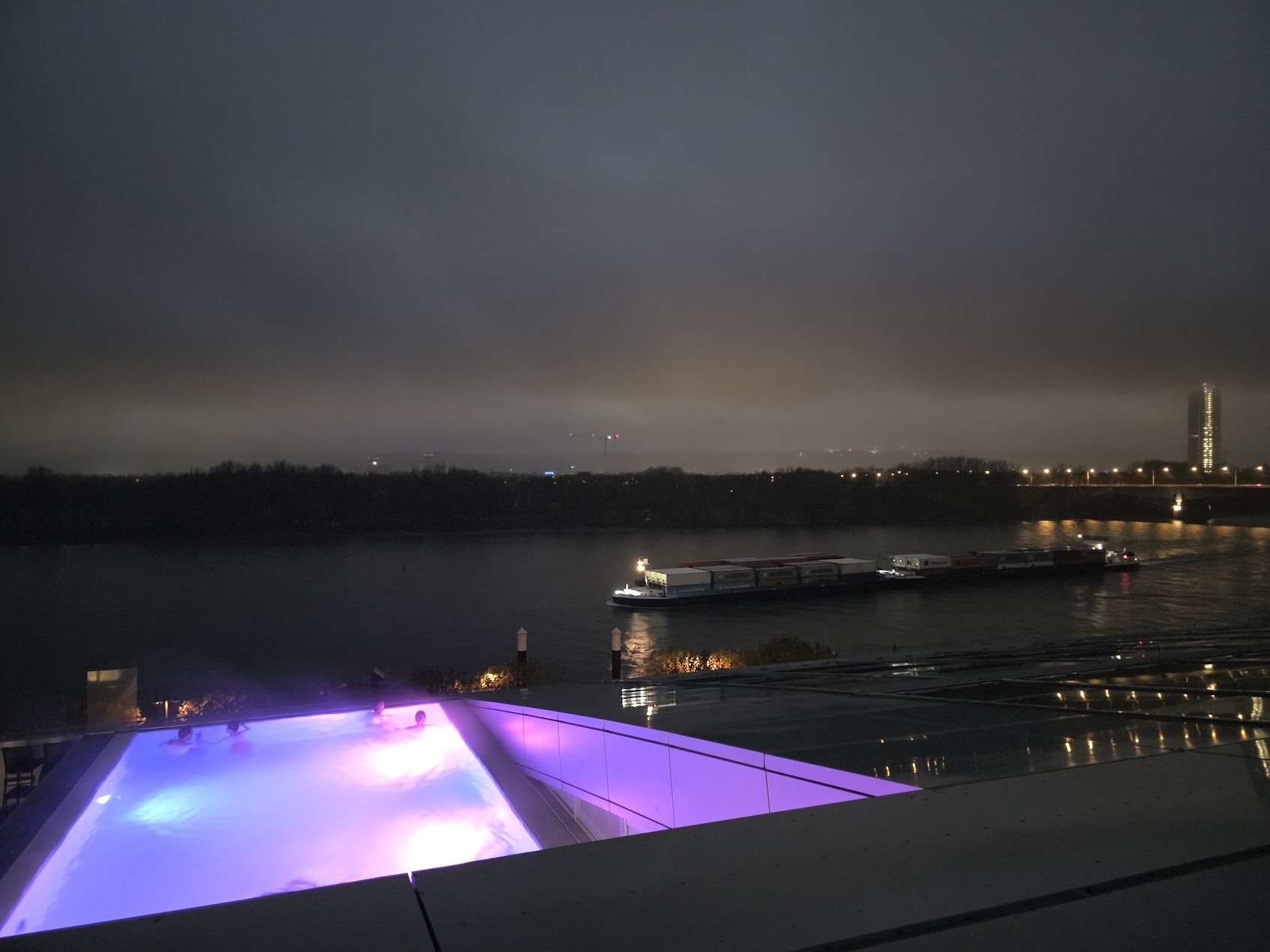 Surrealer Infinity über dem Bonner Rhein am Kameha