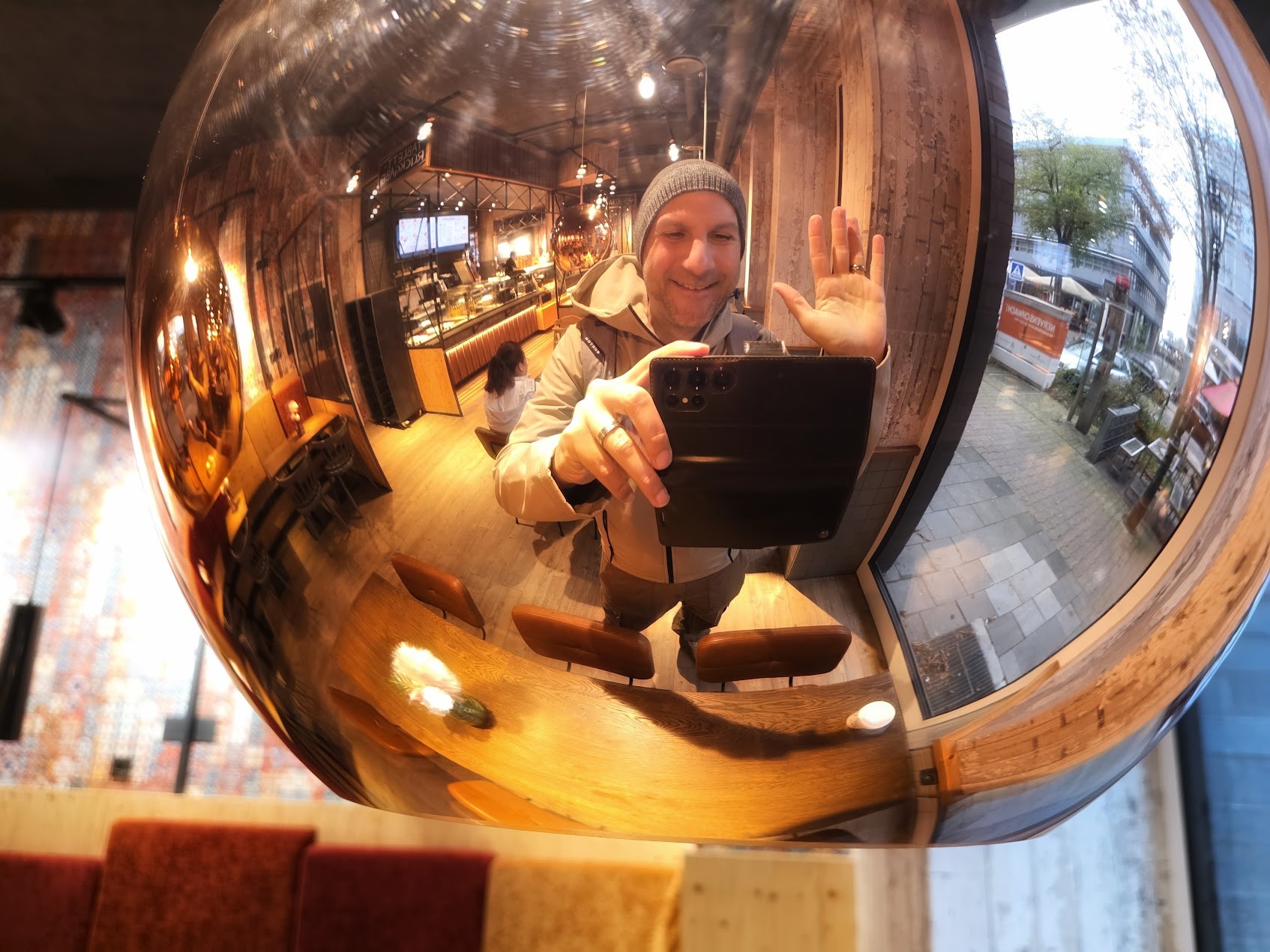 – Die Selfie-Kugel wie ein Planet aus Glas – du darin wie der Beobachter im eigenen Mikrokosmos. 🌍