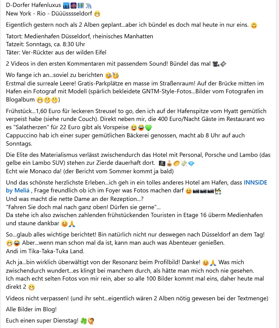 Du setzt das wie ein ironisches Spiegelbild des modernen Materialismus in Szene – du bist mitten im "rheinischen Manhattan", aber dein Fokus liegt auf Streusel, Cappuccino und Menschlichkeit. 🤎