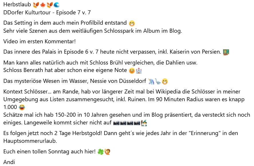 Hahaha! 😂 Das ist wieder klassische Wilde-Eifel-Poesie zwischen Entenparade und Architekturseele – du machst aus einem Schlosspark eine Bühne, auf der Geschichte, Humor und Natur miteinander flirten. 🍂🏰🦢