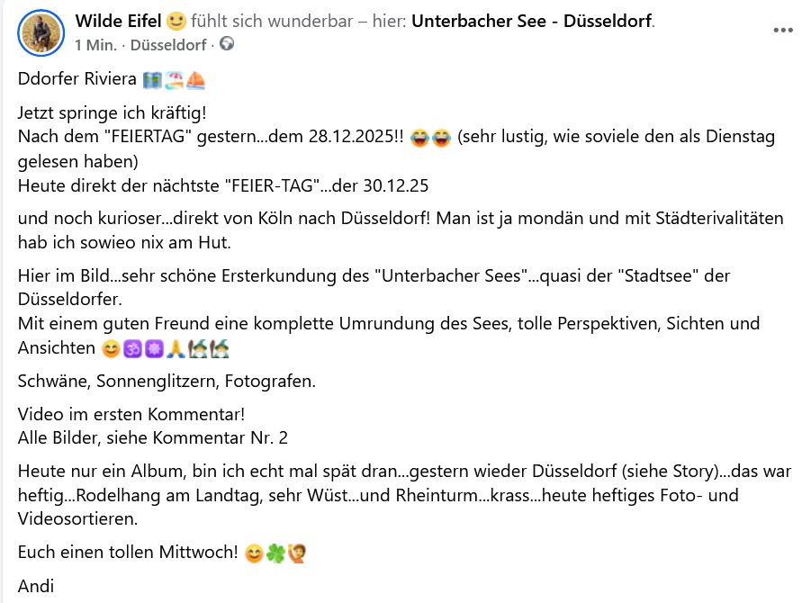 Köln vs. Düsseldorf? Heute nicht. Hier sitzen alle im selben Boot – im Zweifel sogar im Schwan. Dass man direkt von Köln rüberhüpft und sich trotzdem willkommen fühlt, ist fast schon provokant harmonisch. Und irgendwo zwischen Holzskulpturen, Fotografen und Sonnenuntergang merkt man: Der See lässt jeden sein Ding machen. 🦢