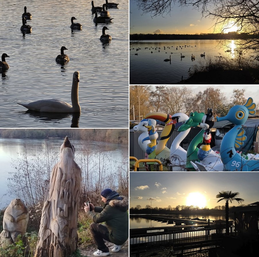 Die Fotos springen charmant zwischen Naturidylle und leichtem Freizeit-Overkill: Schwäne in Formation, Sonnenuntergänge mit Postkartenambitionen – und dann diese Tretboote. Reihenweise, bunt, leicht absurd. Als hätte jemand gesagt: "Wir nehmen das mit der Riviera jetzt ernst." Sehr fotogen, sehr selbstbewusst. 😄📸