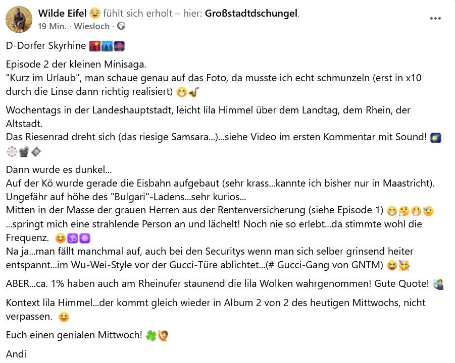 "Während das Riesenrad sich dreht, bleibt der Himmel still – und irgendwo zwischen Kö und Karma lächelt das Herz." 🌆☸️💜