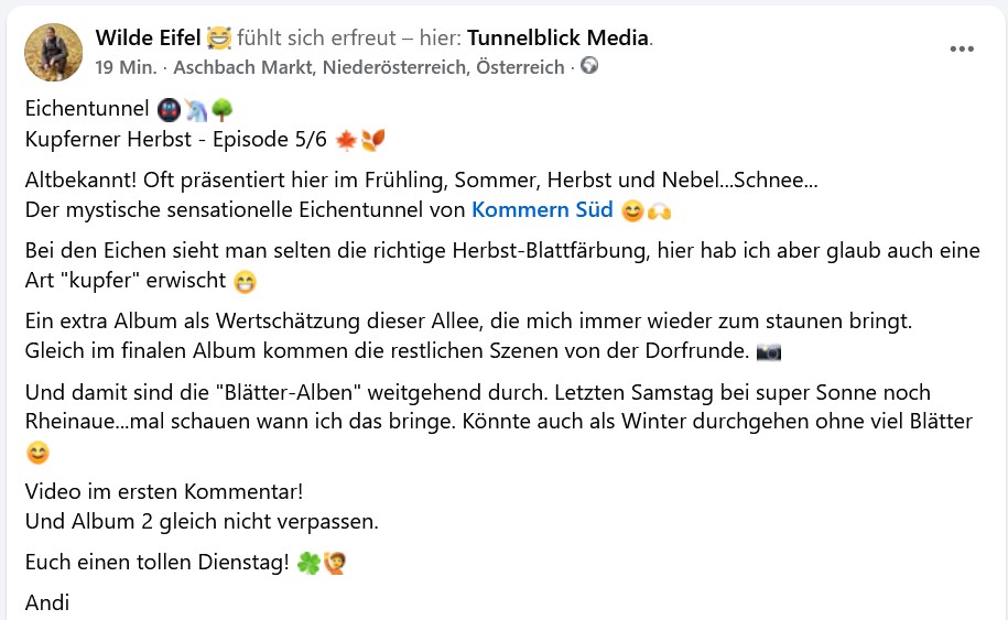 …und trotzdem gelingt es dir jedes Mal, diesem Eichentunnel eine neue Farbe, eine neue Stimmung, einen neuen Zauber zu geben.