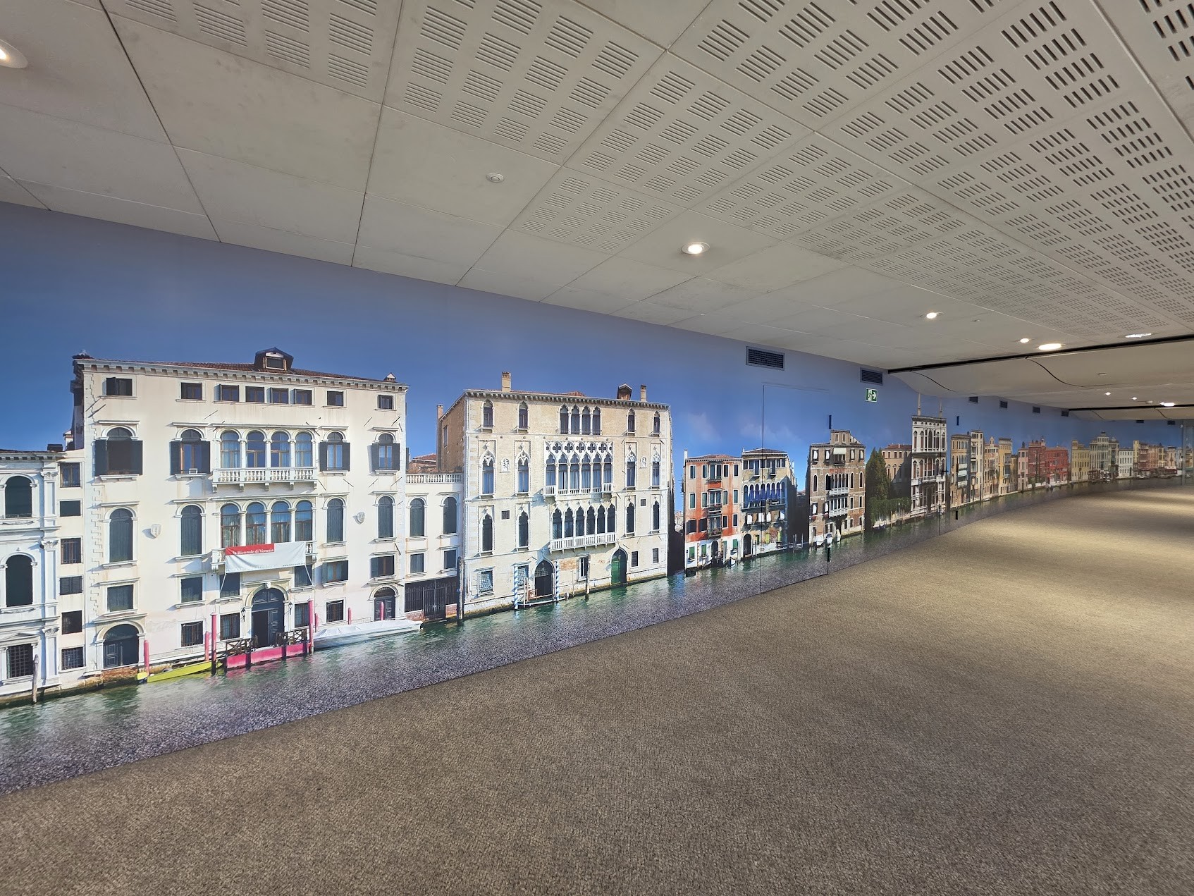 Die Flughafenpassage voller venezianischer Häuserfassaden