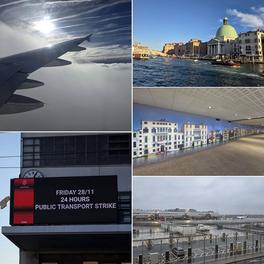 Wolkenmeer unter dem Flügel, Lichtkaskaden über dem Himmel, ein Frankfurter Sprint wie aus "Mission Impossible", Flughafenhallen, die schon nach Lagune duften – und mittendrin der Humor, dass ausgerechnet an diesem Tag der ÖPNV in Venedig beschließt: