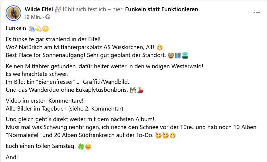 10× Normaleifel, 20× Südfrankreich, Schnee vor der Tür, Funkeln im Kopf – Organisationstalent auf poetisch 😂