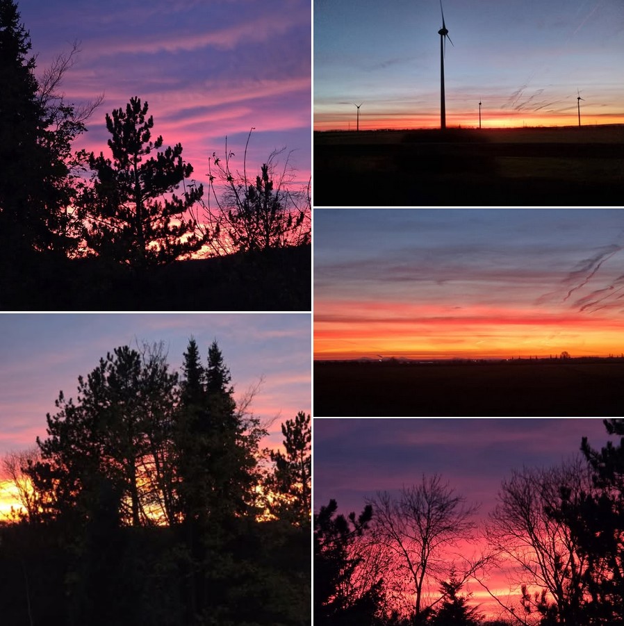 Harmonie zwischen Technik und Natur – die Windräder im Bild und die Gewalt der Farben strahlen gleichzeitig Ruhe und Energie aus.