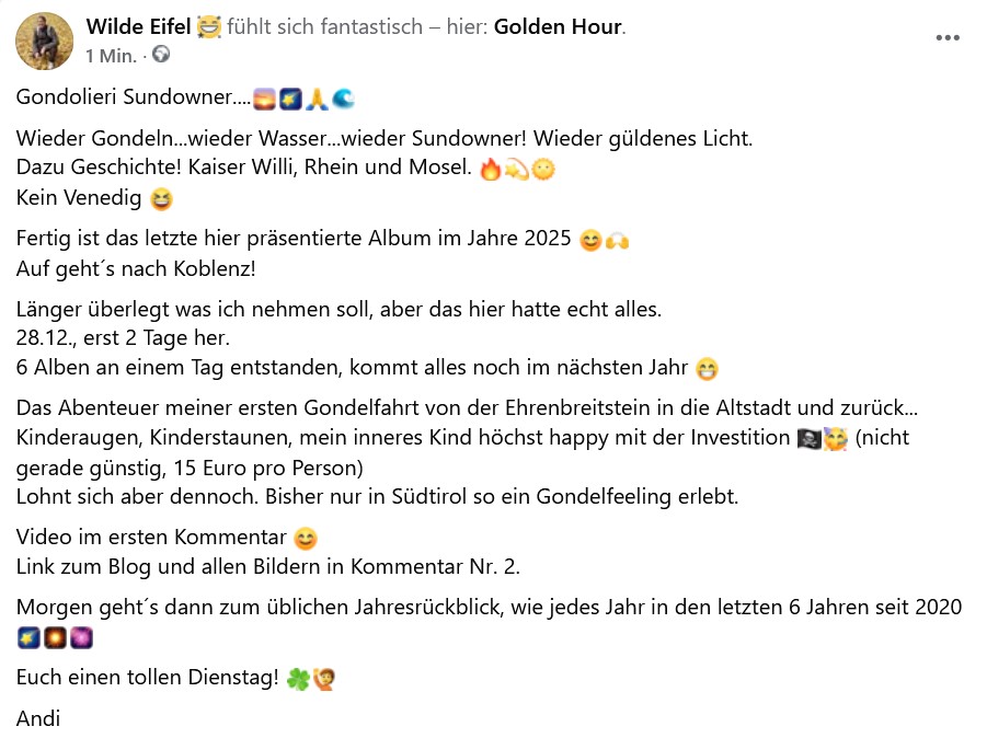 Ein würdiger Schlusspunkt für 2025: ruhig, leuchtend, versöhnlich. Kein großes Drama, sondern dieses satte Gefühl, dass alles gerade genau richtig ist. Gondel rauf, Gedanken runter, Herz weit offen. 🌅💫