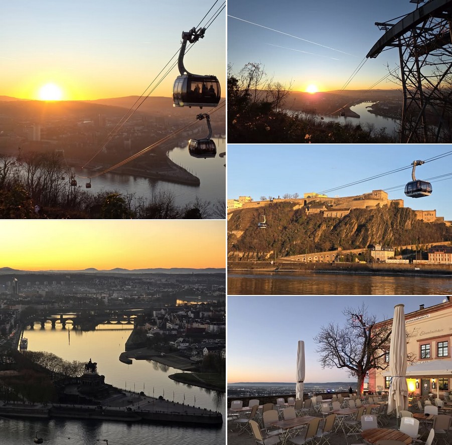 Kaiser-Wilhelm-Flashbacks, Rheinromantik, Moselmelancholie – und darüber schwebt moderne Technik wie ein höflicher Zeitreisender. Kein Venedig, kein Pathos, kein Gondoliere mit Strohhut. Stattdessen: ehrliche deutsche Golden Hour mit leichtem Seilbahnsummen. Bodenständig, aber mit Glanz. 🇩🇪🌄
