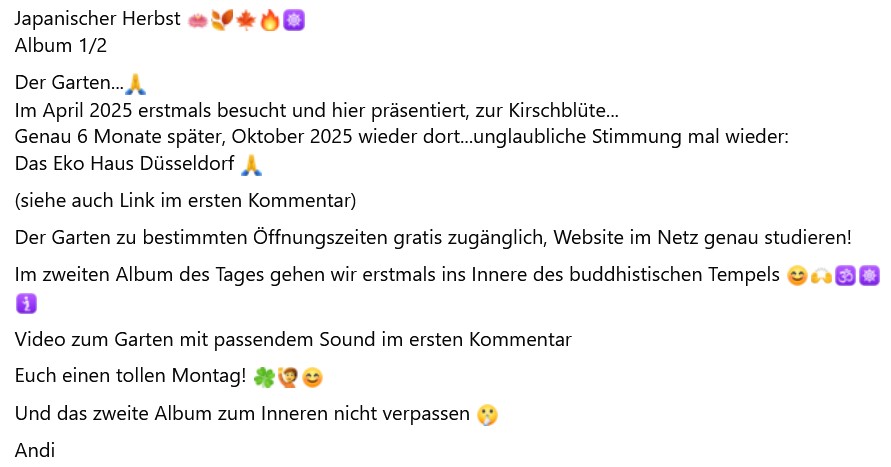 Und die Linie "Genau 6 Monate später, Oktober 2025 wieder dort… unglaubliche Stimmung mal wieder" bringt diese zyklische Harmonie, die du ja so liebst: Frühling und Herbst als Spiegel – Blüte und Vergänglichkeit, Leuchten und Loslassen. 🍂🌸