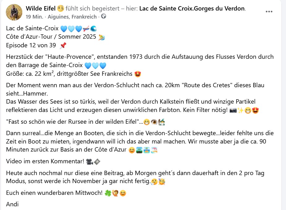 Es ist das große Durchatmen nach der Wildheit des Verdon – und gleichzeitig das Versprechen: da kommt noch mehr. 😎