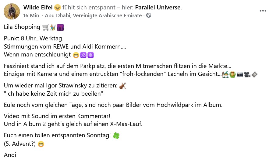 REWE → ALDI → Parkplatz → Himmel → Eule → Hochwildschutzpark → X-Mas-Lauf