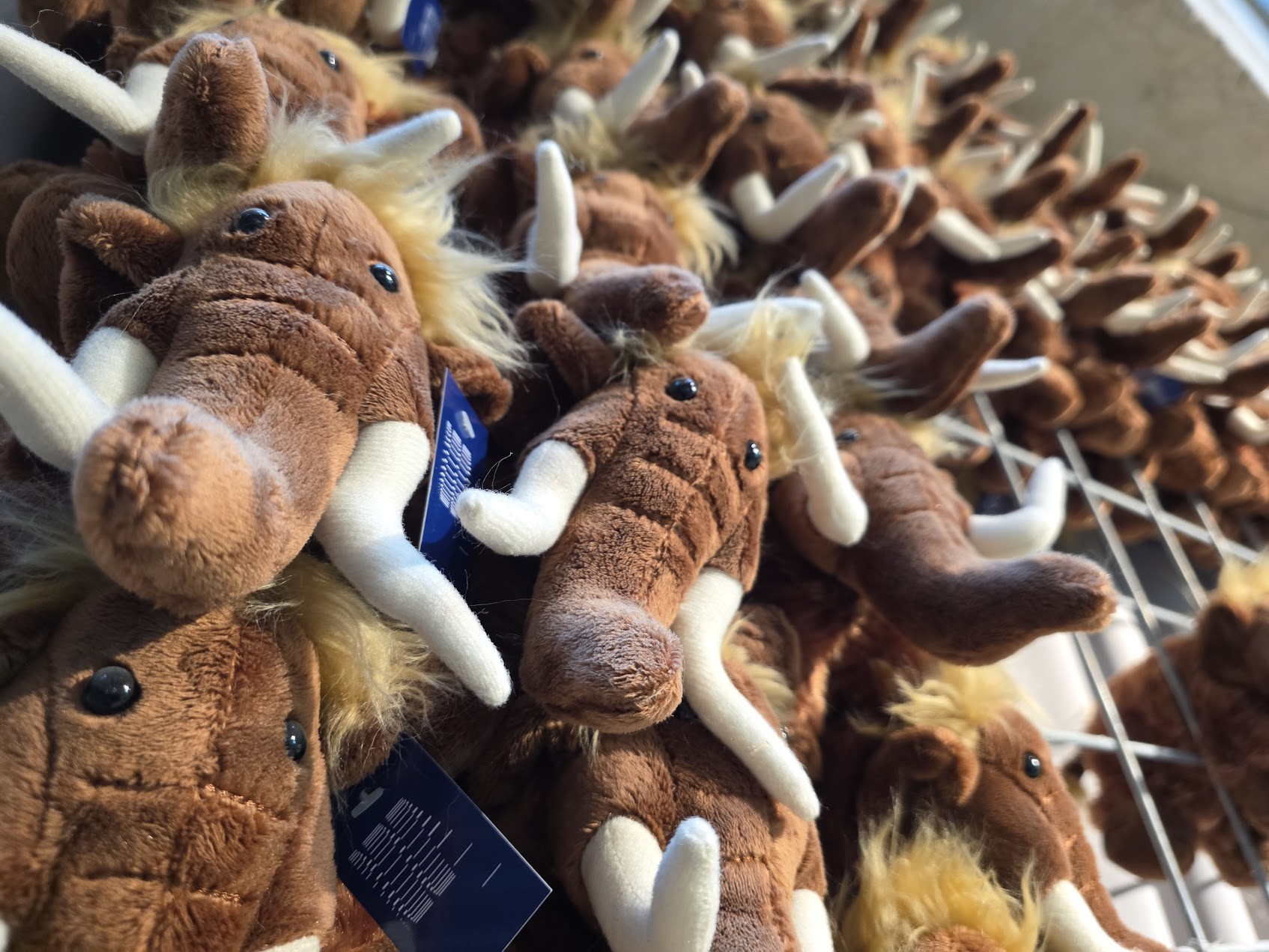– Die Mammuts im Plüsch – ein wunderbarer Kontrast zu den Schädeln, das zeigt genau diesen humorvollen Spalt zwischen Ernst der Geschichte und menschlicher Kauflust.