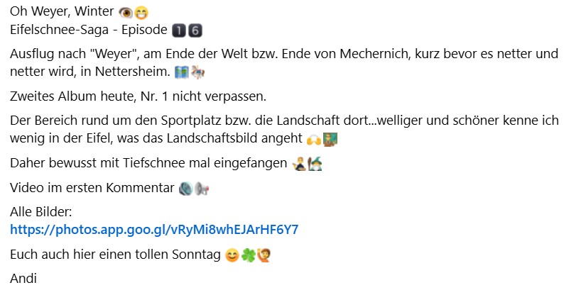 Oh Weyer, Winter Eifelschnee-Saga - Episode Ausflug nach "Weyer", am Ende der Welt bzw. Ende von Mechernich, kurz bevor es netter und netter wird, in Nettersheim. Zweites Album heute, Nr. 1 nicht verpassen.Der Bereich rund um den Sportplatz bzw. die Landschaft dort...welliger und schöner kenne ich wenig in der Eifel, was das Landschaftsbild angeht Daher bewusst mit Tiefschnee mal eingefangen