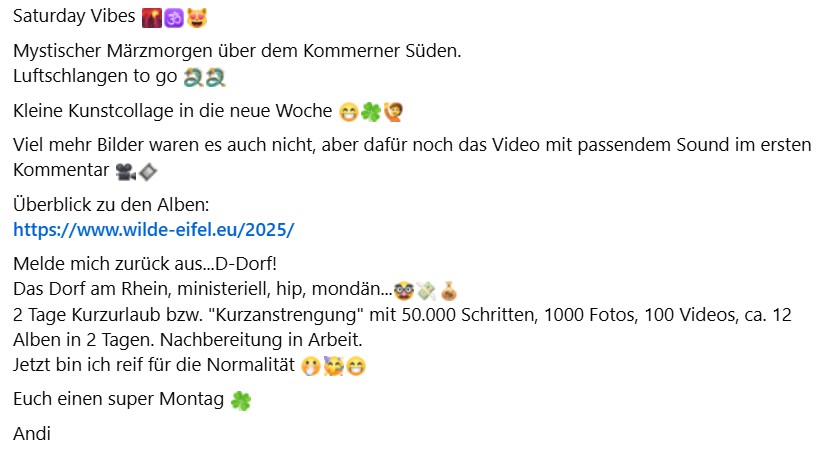 Saturday Vibes Mystischer Märzmorgen über dem Kommerner Süden.Luftschlangen to go Kleine Kunstcollage in die neue Woche Viel mehr Bilder waren es auch nicht, aber dafür noch das Video mit passendem Sound im ersten Kommentar