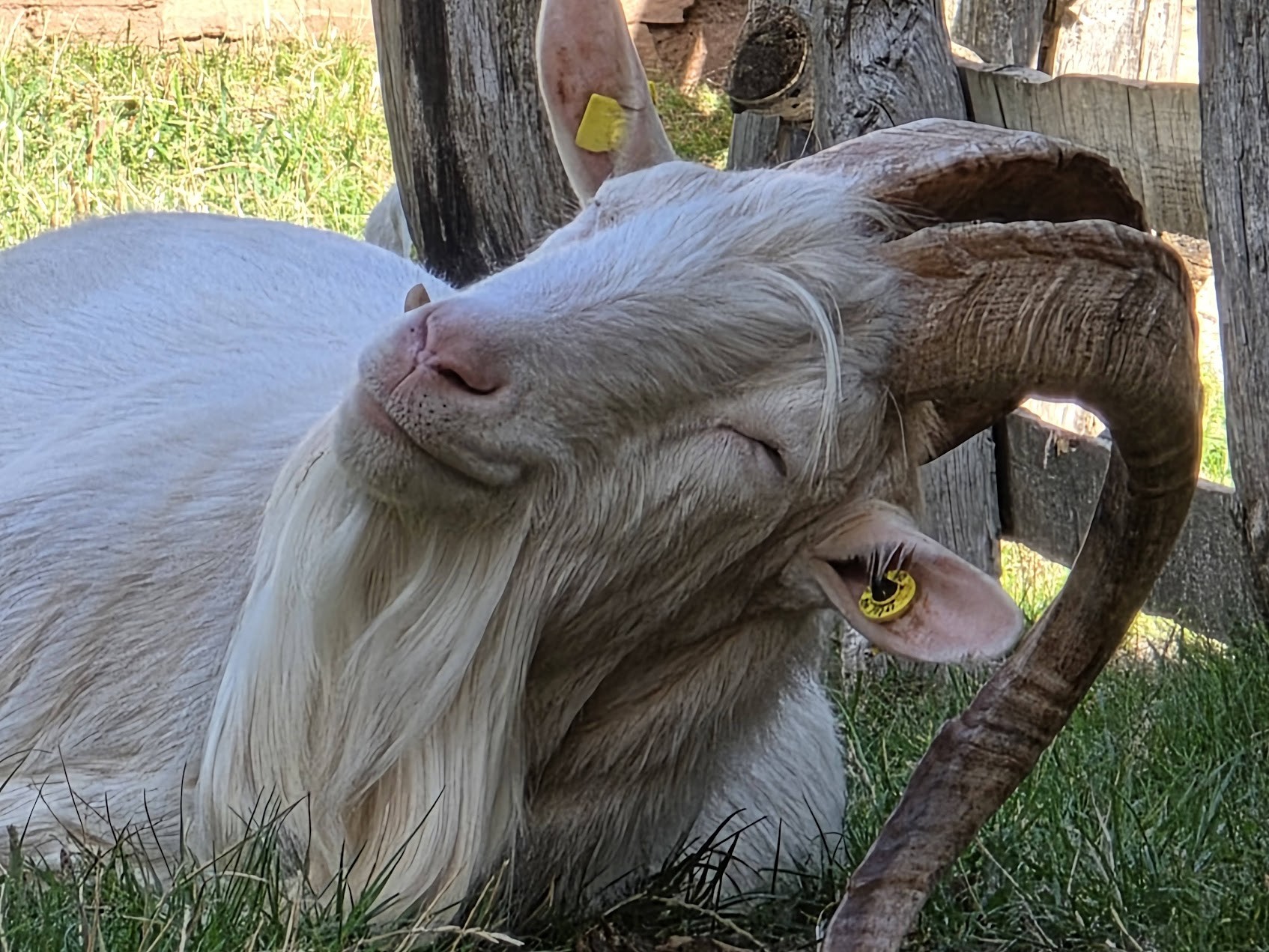 Der Ziegenbock mit geschlossenen Augen: einfach grandios. Das ist kein Tierfoto, das ist eine Ikone. Man hört ihn fast denken: "Lasst mich in Ruhe, ich praktiziere gerade Erleuchtung." 🧘♂️