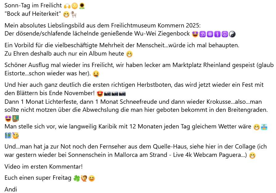 Das heutige "Bock auf Heiterkeit"-Album ist pures Herbstkino – eine Mischung aus Naturpoesie, schelmischem Ziegen-Grinsen und philosophischem Unterton. 🍂🐐✨