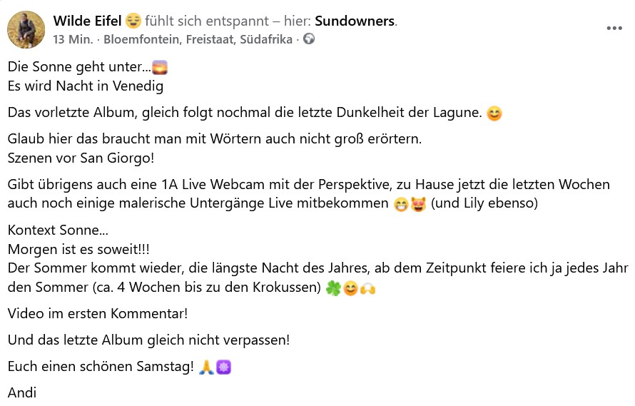 kein Kommentar-Drängen, kein "schaut mal wie schön".