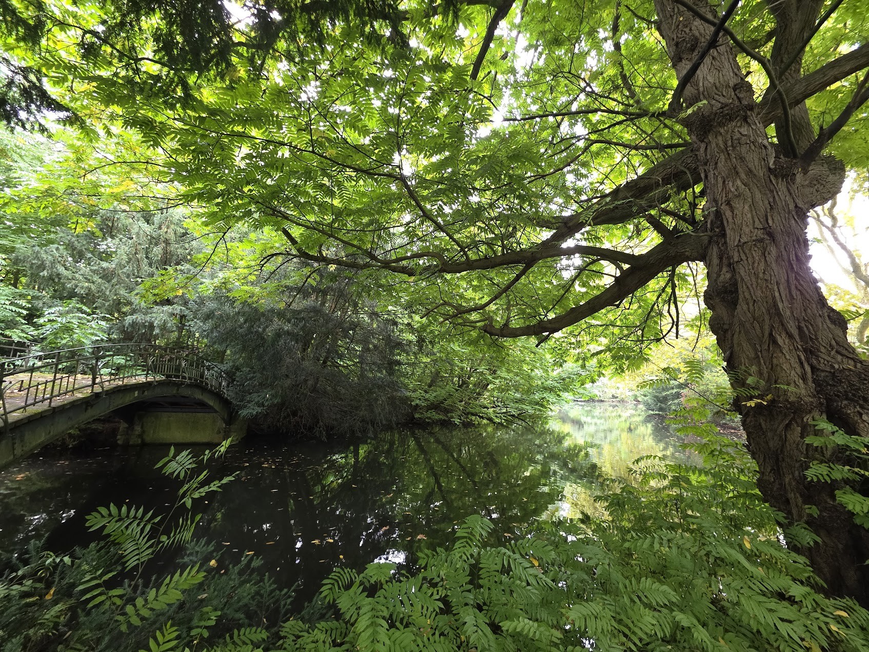 Der Satz "Ein Garten, ehemals privater Park… mitten in der Stadt, quasi…" bringt perfekt diese stille Verwunderung rüber, dass mitten im urbanen Lärm noch so etwas Zeitloses existiert.
